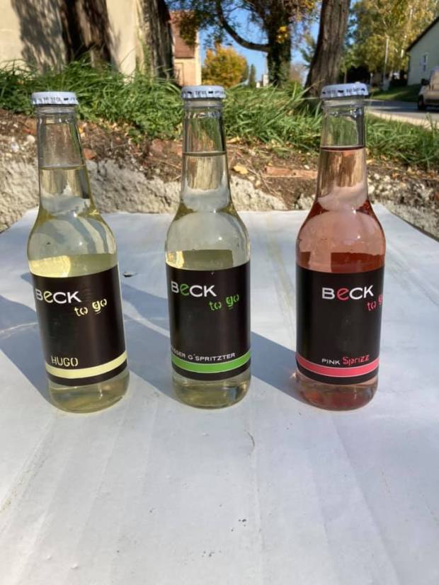 BECK to go in den Sorten Weißer G’spritzer, Hugo und Pink Sprizz